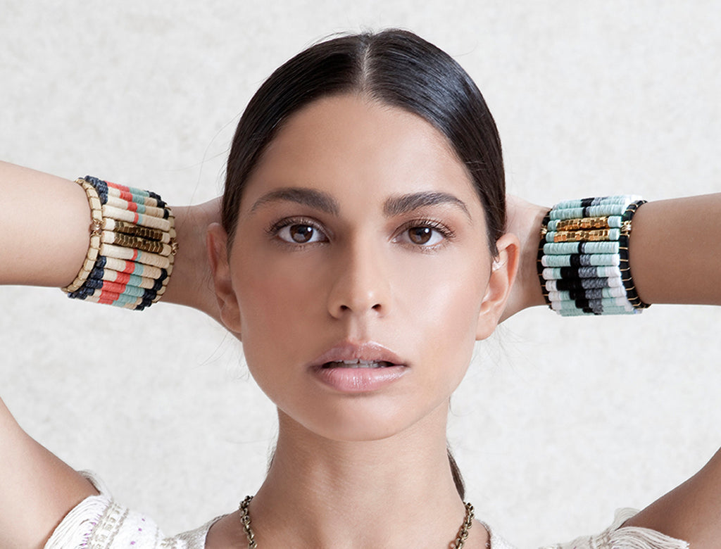 Designed and made by Tel Aviv's FORESTA -The Rug bracelet is a hand made piece. -Weaving of colorful sequins and fine leather straps...