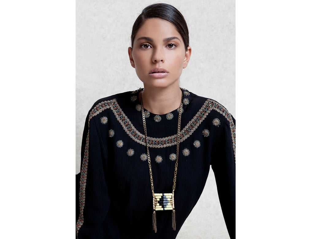 Designed and made by Tel Aviv's FORESTA -The Native pendant necklace is a hand made piece. -Weaving of colorful sequins and fine leathe...