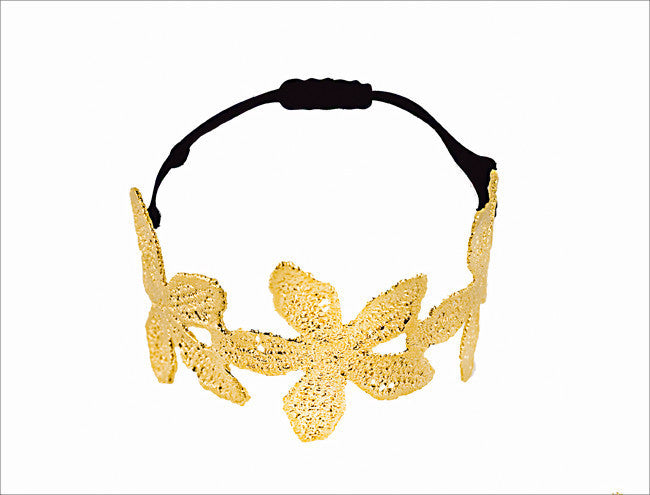 Gold Plated brass leaves and macrame adjustable black string band (one size fits all)